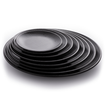 Plato redondo de melamina para restaurante, suministro de fábrica, color negro mate, nuevo estilo